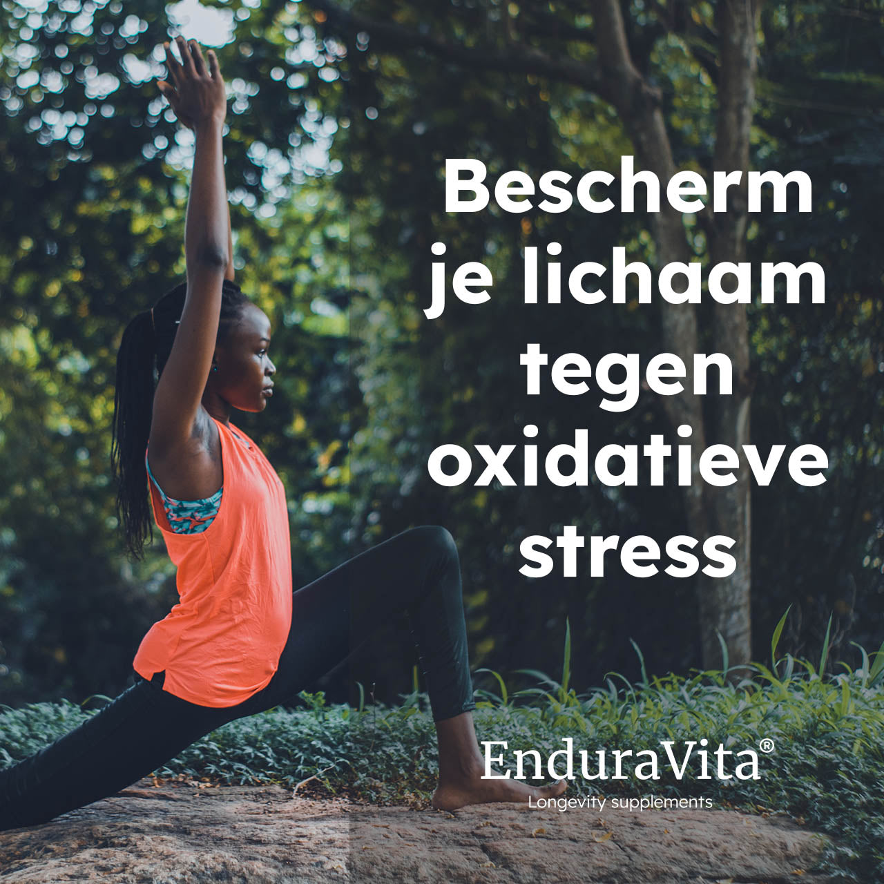 - Beschermt het lichaam tegen oxidatieve stress en ondersteunt onder andere de gezondheid van hart- en bloedvaten.